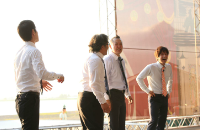 芝居が終わり、ハケてきた4人の顔は、東京では見る事が出来ないであろう、爽やかな汗をかいた、そりゃあビールが似合いそうな爽快な顔をしていた。