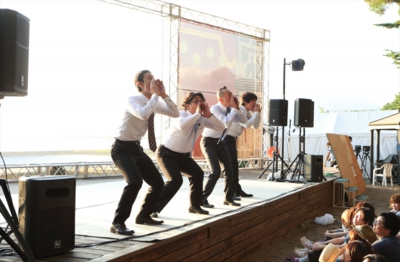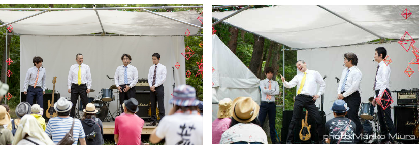 舞台の上の男性陣の顔も、ほころんでいる。暑さも、逆光も、何もかも吹っ飛ぶ。