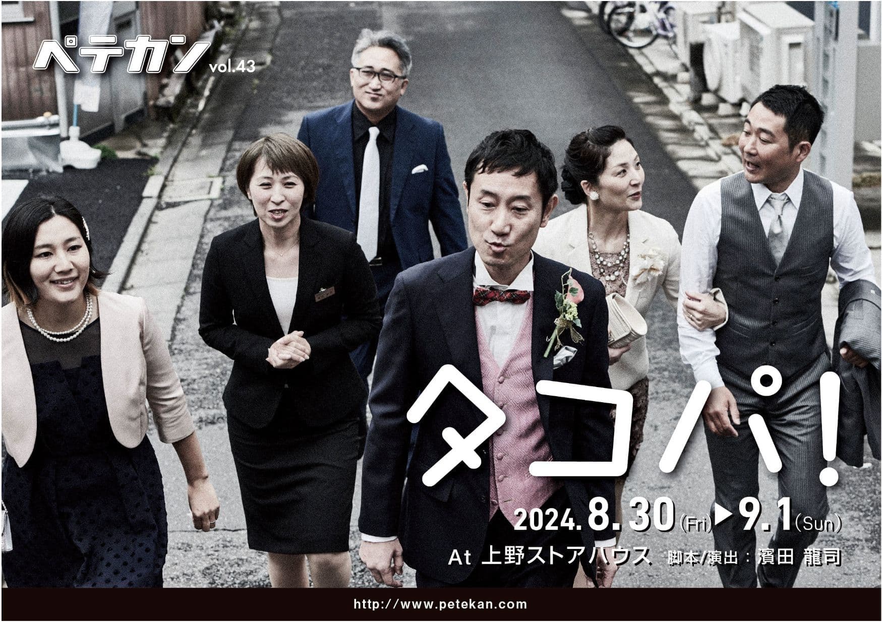 始まった披露宴。倒れてしまった母、控え室へボイコットする親族。どうしていいか分からない司会進行を頼まれた新郎の劇団メンバー。「家族って一体?」ペテカン旗揚げ20周年記念第二弾としてお送りした本田誠人書き下ろし新作。本田の発案を元にメンバーでストーリー、登場人物、キャスティング、小ネタのアイデアを語り尽くし、濃厚な台本に仕上げられた読み物通しても楽しめる作品。「家族」と「劇団」辞めるのか?続けるのか?柳家喬太郎師匠や田中真弓さんらビッゲストをお招きしながらも物語の主軸となる家族はペテカンメンバーがキャスティング。ペテカン史上ハイテンションMAXドタバタコメディ。