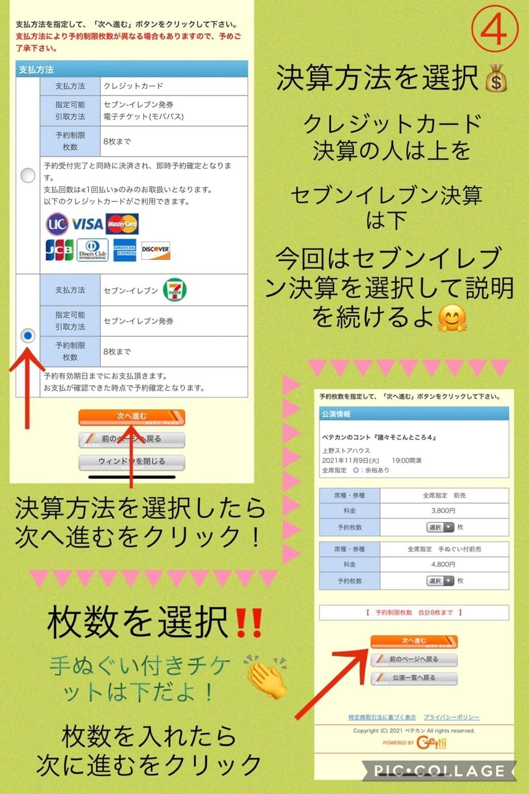 ・お支払いは、Webからお申込の際にクレジットカード決済、またはチケット受け取り時にセブン-イレブン店頭でお支払いの、どちらかをお選びいただけます。