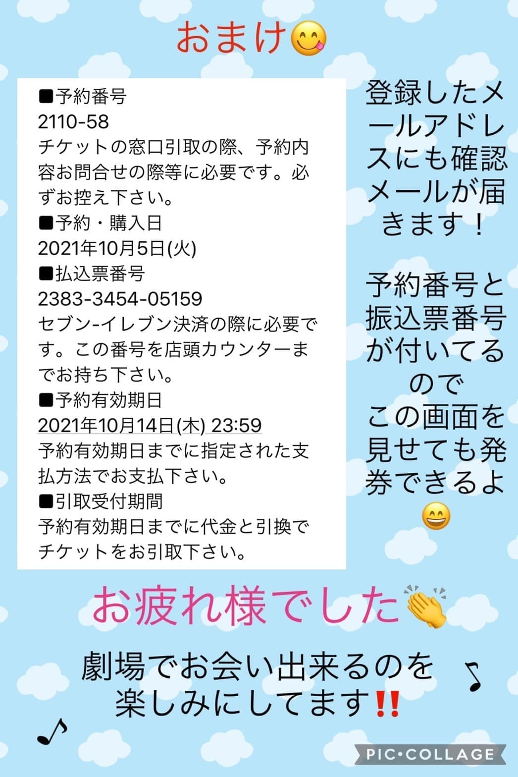 ・払込票番号を予約時にお伝えしますのでメモをご用意ください。