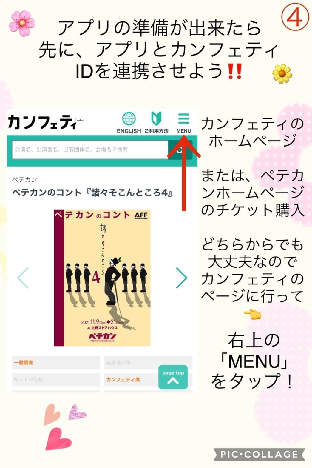 予約方法の詳しい説明はこちらへGO!【カンフェティのサイト】