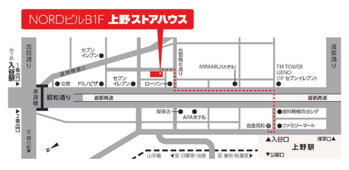 上野ストアハウスは車いすのままでのご入場はできません。自力での数段の階段の上り下りが必要となります。※スタッフが補助いたします。