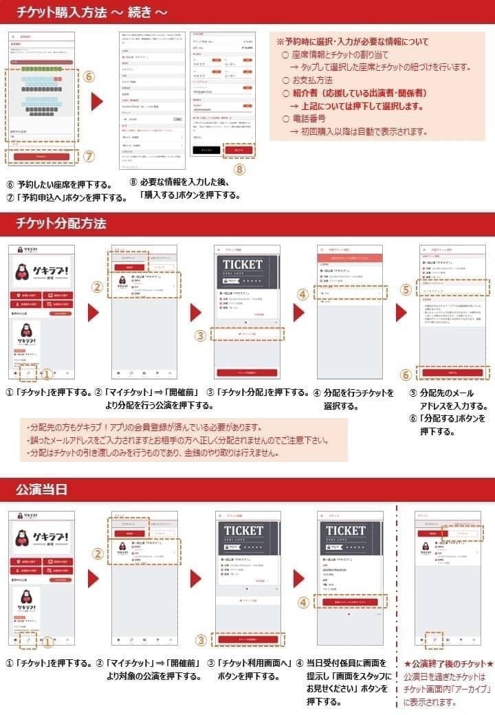 【ゲキラブ!購入方法・当日の使い方】※画像をタップすると拡大表示されます。